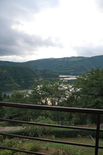 部屋から湖が見えます。 |