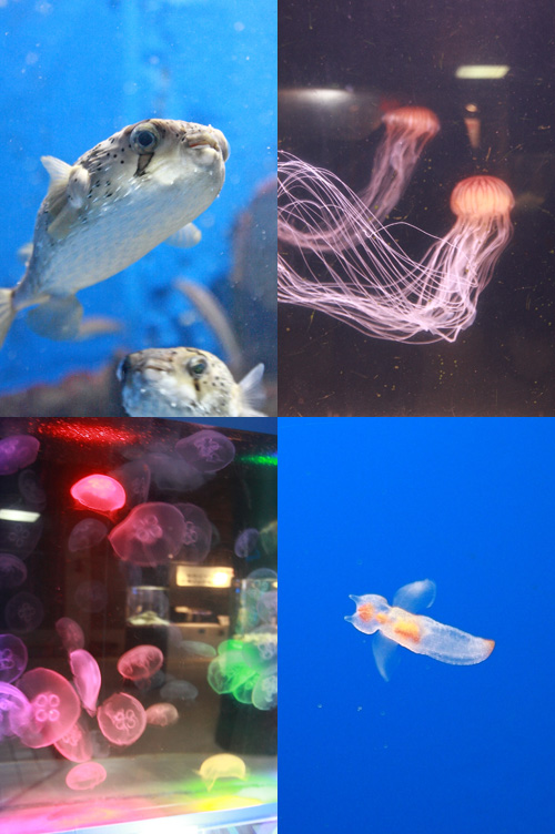 他にもペンギン館とかウミガメ館とか、カワウソ館とか。 サメに触れる水槽とか。 結構衝撃的な展示も多かったです。 |