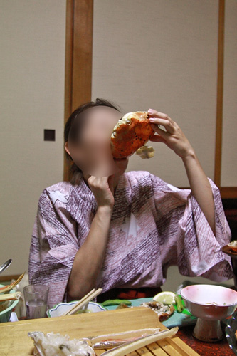 蟹味噌酒を豪快にすする、妖怪です。