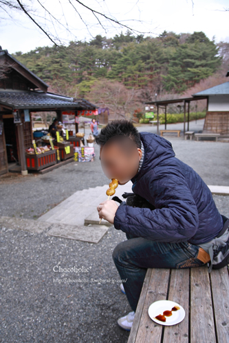 とりあえず団子を食べる夫。