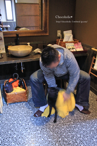 チョコちゃんも露天風呂で泥パックしました〜。(若干嫌がっております〜)