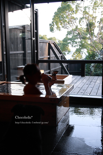 犬用風呂にも温泉が出るようになっているので、もちろん、チョコも温泉に浸かりました〜。