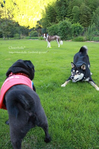 そしたら先客が♪ この黒柴ちゃん、チョコに遊ぼう!ってかわいいの^ |