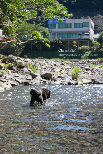 浅いところで水遊びを楽しむよ〜。