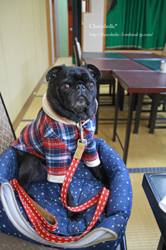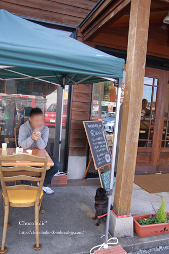 恵那峡にある本社とは違って、こちらはカフェスペースが小さくてしかも外席はこんな感じでお店の入り口横という笑 みんなにもチョコにもジロジロ見られながらいただきまーす。 |