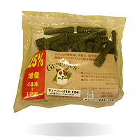 | グリニーズガムもたまにあげます。しかし、あまり噛むことを知らないチョコにはちょっと危険。たまに半分丸呑みしただろうと思われる塊を吐いたりします。 |